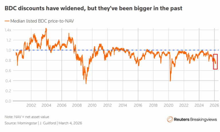 Le timing est important. La Lettre Kobeissi a récemment tiré la sonnette d'alarme sur une surévaluation sérieuse dans l'espace du crédit privé. Les Sociétés de Développement Commercial échangent actuellement à seulement 0,73x leur valeur nette d'actifs, ce qui signifie que le marché ne les évalue qu'à 73 cents pour chaque dollar qu'elles prétendent détenir. Le gel des retraits de BlackRock correspond à ce schéma de manière inconfortable.