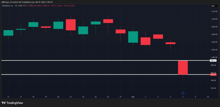 Les marchés n'ont pas hésité à réagir. Les actions de BlackRock ont chuté de 7,69 % en une seule séance, la plus forte baisse d'un jour de tout ce cycle, dépassant même la vente de Q4 2025 qui avait ébranlé les investisseurs à l'époque.