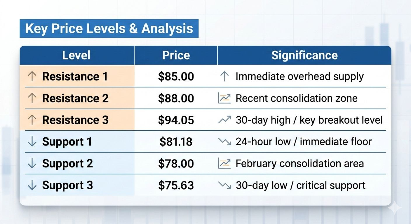 Immédiat : La fourchette de 81 $ à 85 $ déterminera la direction à court terme