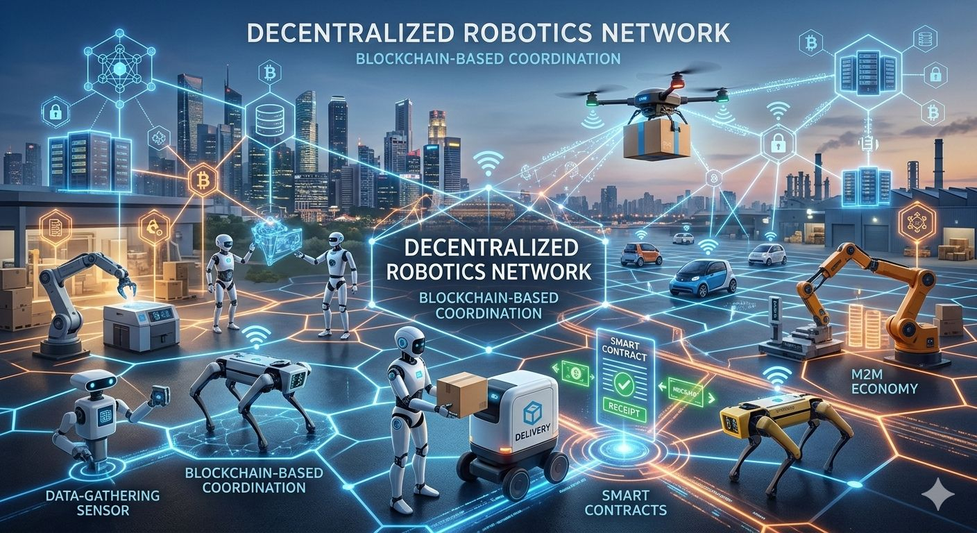 The concept is simple but powerful. Instead of robots depending on a single company or central server, they could connect to a blockchain-based network where coordination, payments, and data sharing happen in a decentralized way. This could allow machines to interact with each other, share information, and even offer services without needing a central authority.
