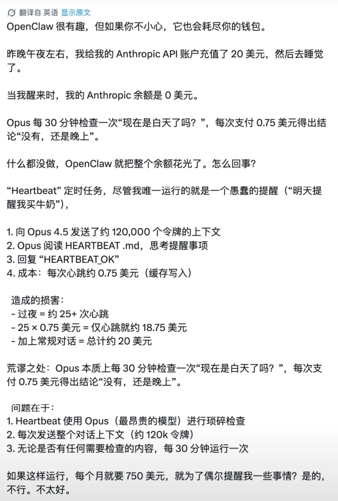 Bien sûr, ce qui est plus important, c'est que l'élevage de homards nécessite des coûts, certains développeurs ont découvert après révision que le système, sans trop de production réelle, consomme 20 dollars par jour juste en maintenant le mécanisme de battement cardiaque, brûlant presque 750 dollars en un mois.