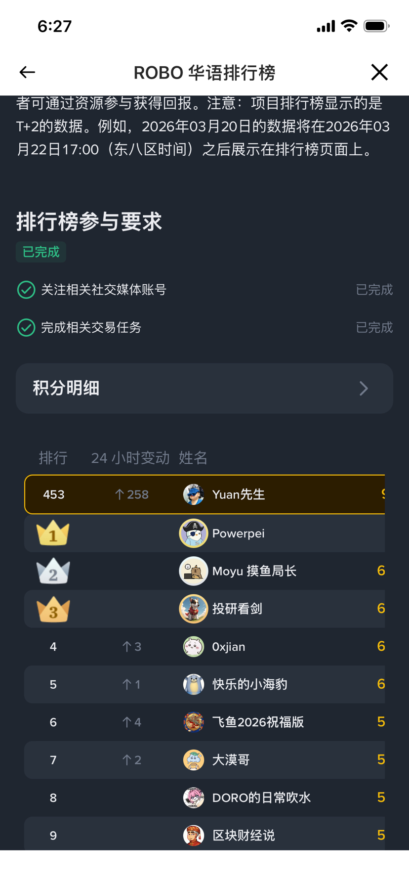 1️⃣ Faites monter la voix de la place, ne regardez pas le classement qui peut être difficile, mais parfois, c'est juste un article à succès qui vous propulse, par exemple l'événement de lancement du token de @Fabric Foundation de $ROBO , aujourd'hui je suis monté à plus de 400ème place, et je suis arrivé tard, pour être honnête, ce genre d'événement n'a pas vraiment de risque, persévérez, passez un peu plus de temps chaque jour, le travail acharné apporte des opportunités !