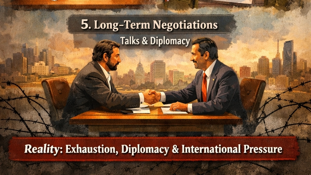 La plupart des conflits modernes ne se terminent pas par une victoire totale mais par un accord de cessez-le-feu, similaire à ce qui s'est passé après des conflits comme la guerre Iran-Irak. Les combats s'arrêtent, mais les tensions politiques restent.