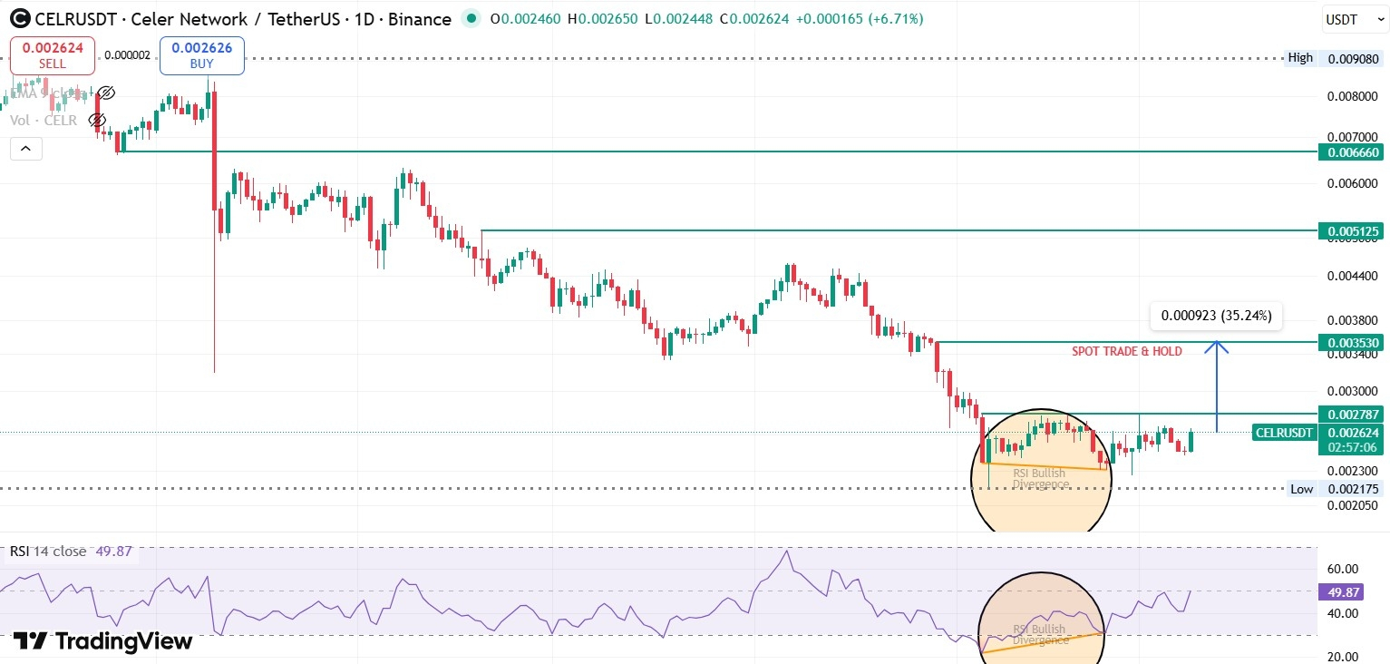 If the broader crypto market enters a strong bullish cycle CELR could move toward $0.01–$0.012