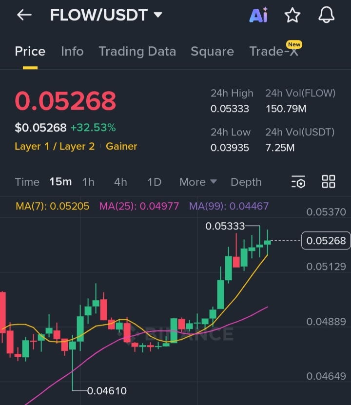 Another factor behind the rally is capital rotation into Layer-1 blockchain tokens, as investors look for undervalued infrastructure projects during altcoin momentum phases. Market analysts note that recent FLOW price spikes may also be part of a broader altcoin rotation, where traders move funds from large caps like BTC into smaller Layer-1 projects seeking higher short-term returns. � From a technical perspective, the chart shows a strong bullish structure with price holding above key moving averages and forming higher highs and higher lows, confirming buying pressure. The breakout above the $0.05 resistance zone suggests that if trading volume remains strong, the next psychological targets could appear around $0.06–$0.07, while support remains near $0.048–$0.050. If momentum continues and investor interest in Layer-1 ecosystems grows, $FLOW could remain one of the short-term momentum tokens to watch in the current altcoin cycle. 🚀