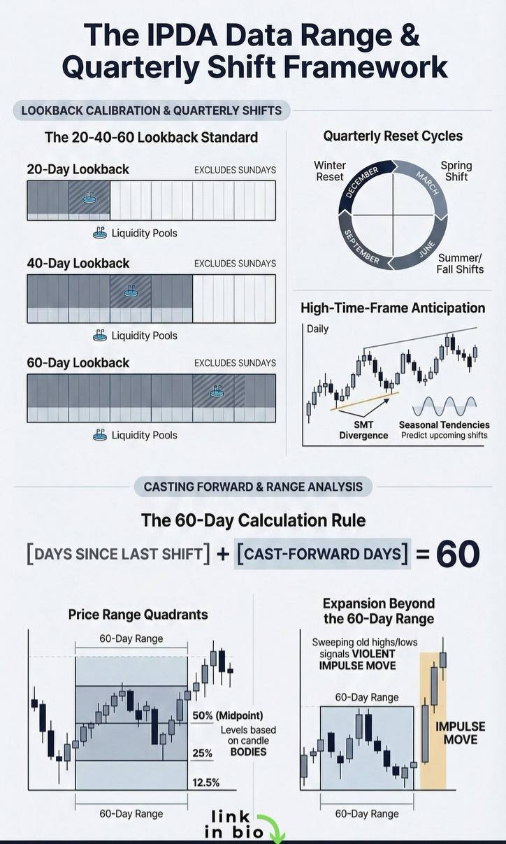 The ICT IPDA Quarterly Shift Framework is a powerful tool for anticipating major market moves in crypto (and all markets) 💎