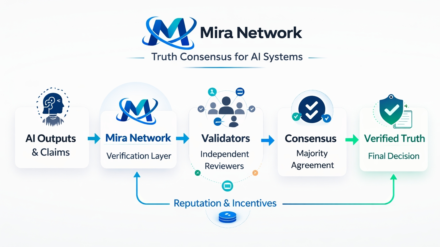 That is where the phrase truth consensus starts to make sense. A single AI answer, on its own, is just a claim. Mira Network appears to build around the idea that claims should be checked by a wider group of validators rather than accepted at face value. Validators, here, are the participants who examine outputs and judge whether they seem accurate, consistent, or supported. The word consensus comes from blockchain logic, where a network reaches agreement on what is valid. Mira seems to apply a similar instinct to information.