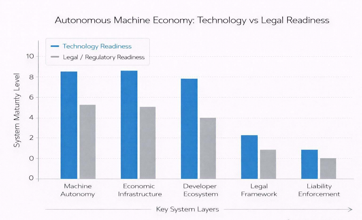 which is incredible. But the society around it hasn't caught up. We don't have laws for machine-to-machine liability. We don't have frameworks for autonomous agents entering into contracts. If a robot funded by a DAO causes an accident, do we sue every member of the DAO? Do we drain the robot's treasury?