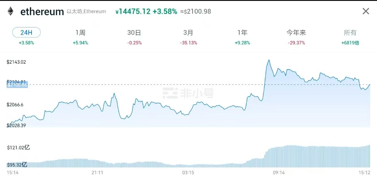 一句话总结:以太坊最近比比特币强,有点补涨的意思。