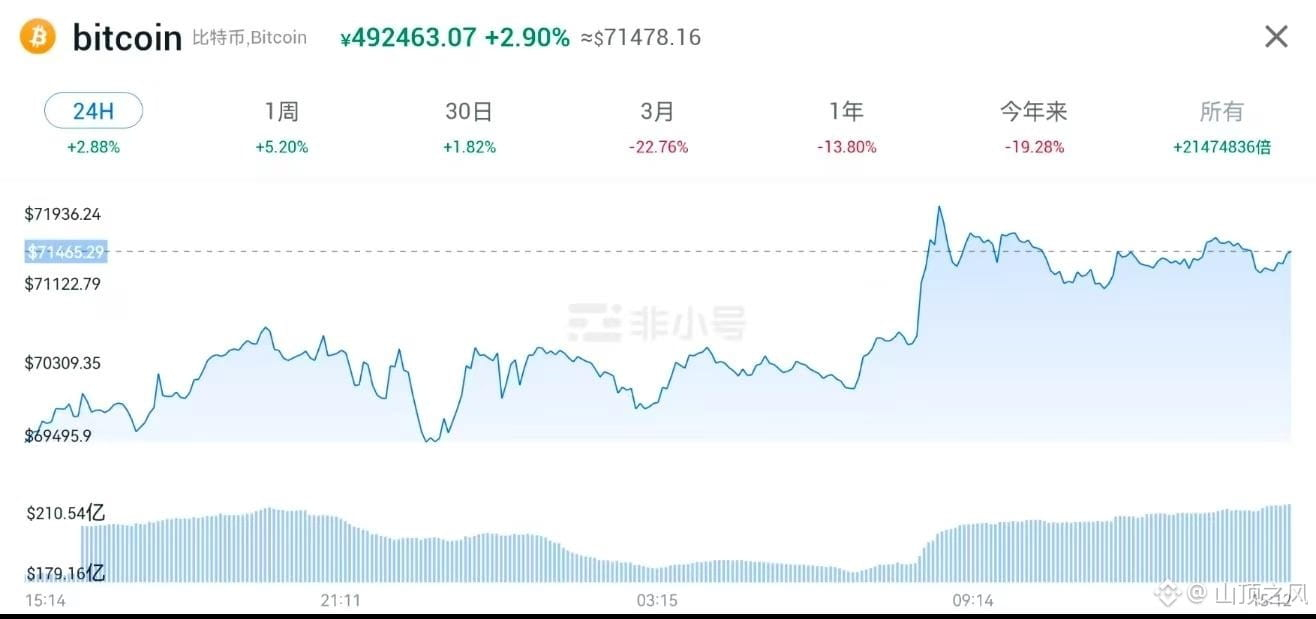 按理说,外面打仗,股票都跌成狗了,比特币也该跟着遭殃。但今天早上它偏偏不走寻常路,直接从7万以下拉到了72000美元,以太坊也站上了2100。这就很诡异了,到底是真牛要来了,还是庄家拉盘忽悠咱们接盘?