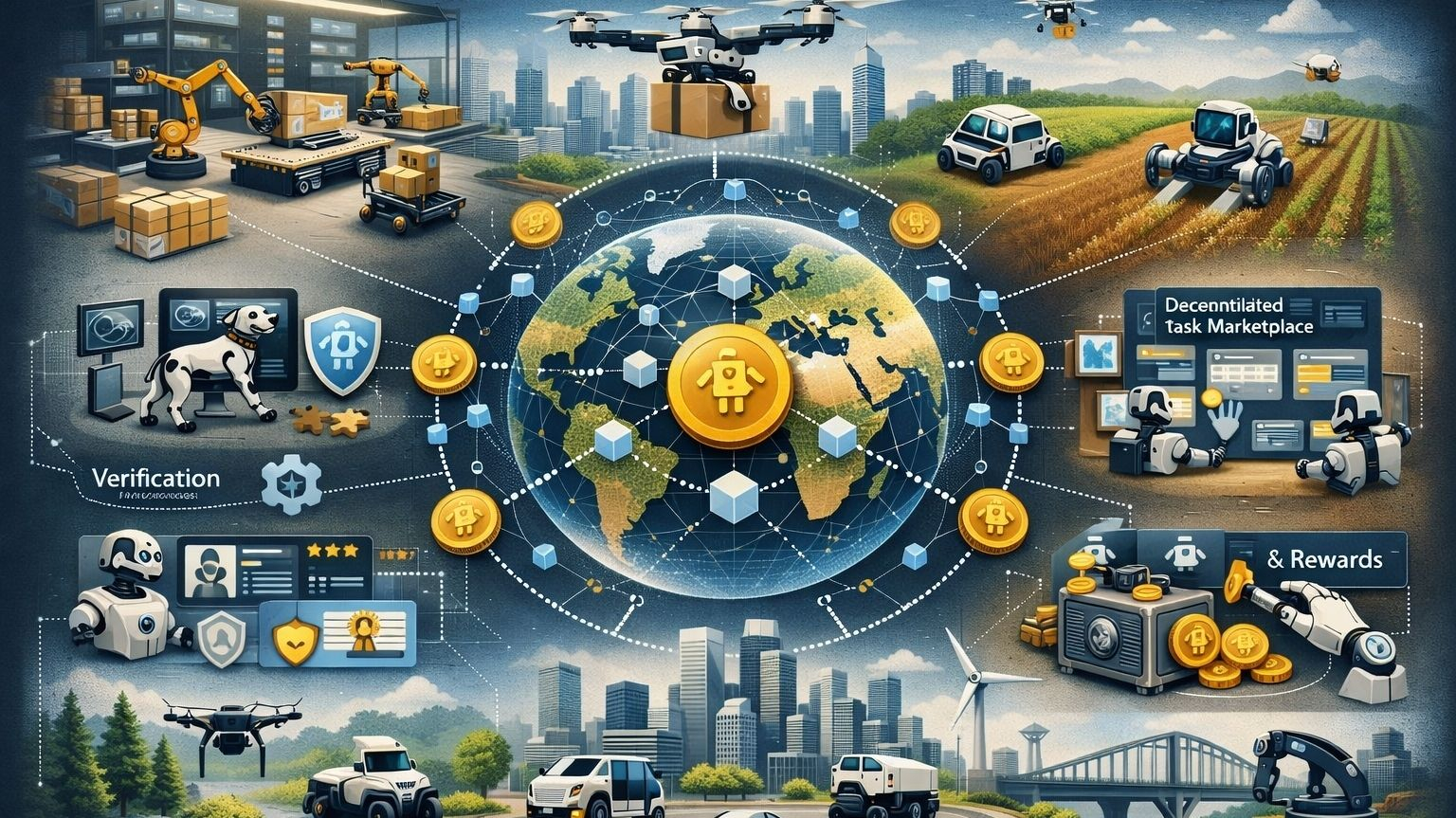 Smart cities may eventually rely on decentralized robotic coordination as well. Autonomous machines could assist with tasks such as street cleaning, waste management, traffic monitoring, and infrastructure maintenance. Rather than relying on isolated municipal fleets, cities could access robotic services through an open network capable of responding dynamically to urban needs.