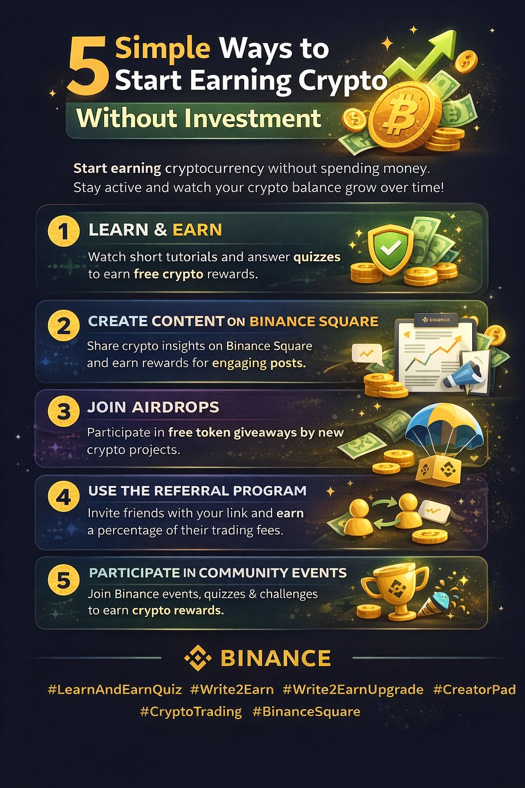 Many beginners think that earning cryptocurrency requires a big investment. But the truth is, there are several ways to start building your crypto balance without depositing money.