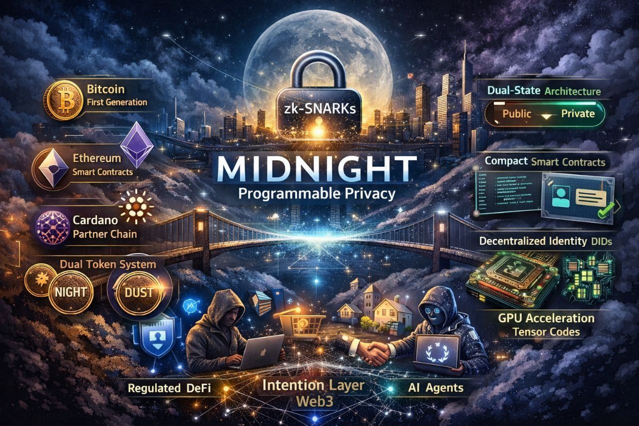 وهنا يظهر Midnight كمفهوم جديد يركز على الخصوصية القابلة للبرمجة، بحيث يمكن إخفاء البيانات الحساسة مع الحفاظ على إمكانية التحقق منها.