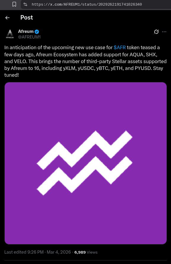 Команда Afreum добавляет поддержку #AQUA , #SHX и #VELO