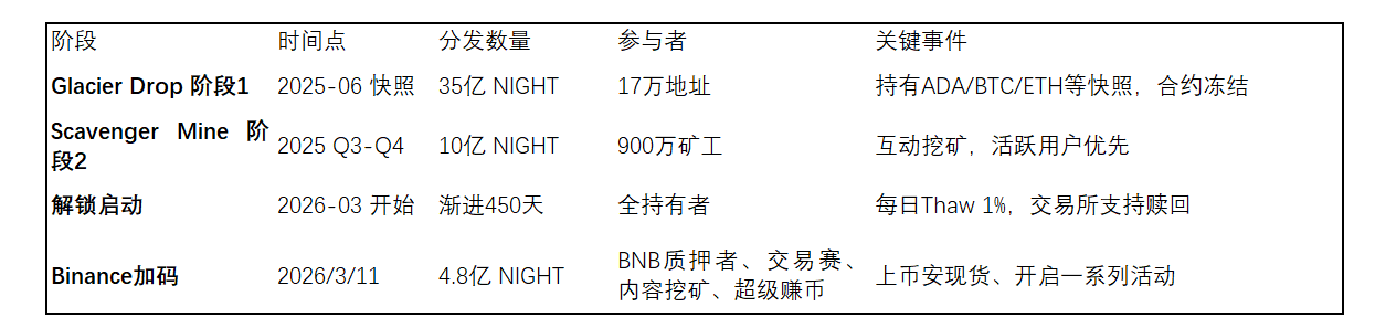 这,便是Midnight Network书写的“Glacier Drop”空投传奇——史上规模最为宏大的社区空投,总计分发45亿枚NIGHT代币,占据其总供应量240亿枚的近20%,凭借这份十足的诚意与公平的机制,成功吸引了800多万个地址踊跃参与,成为Web3世界中一段广为流传的佳话。