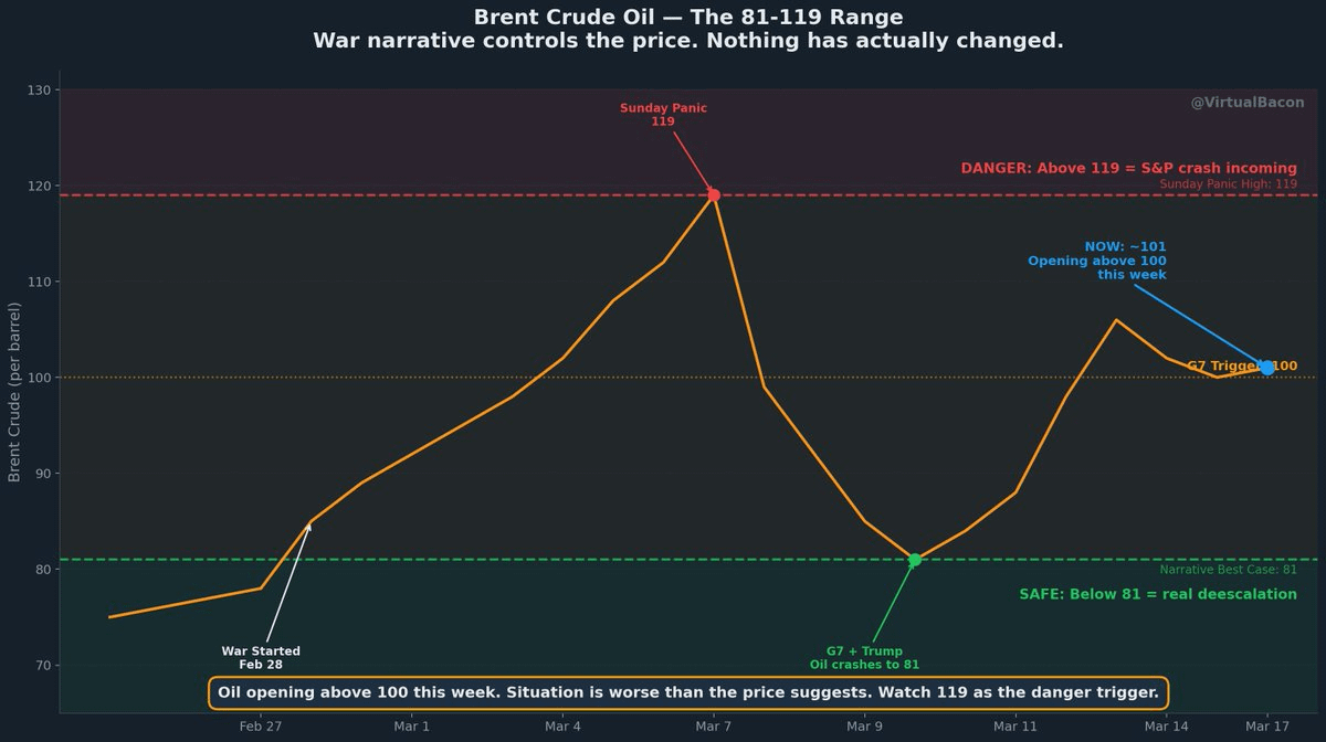 Mais cette semaine, le pétrole s'ouvre au-dessus de 100 $ au lieu de le faire en dessous. C'est un changement. Le récit a calmé les choses la semaine dernière, mais la situation réelle est pire.