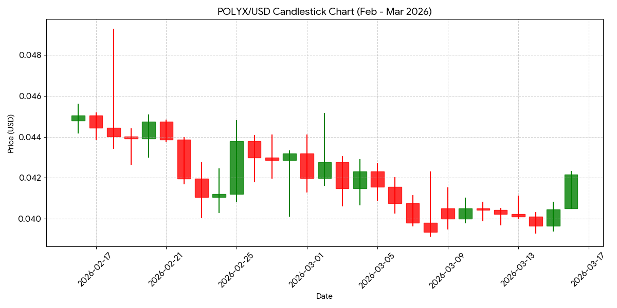 The chart below illustrates the price action of POLYX over the last 30 days, showing the recent stabilization and the emergence of support levels near $\$0.04$.