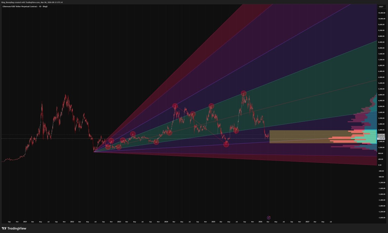 • Bullish: hold $1.9k–$2.1k demand > higher low > target ~$3k midline