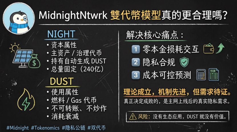 这本身就是个结构性矛盾,所以我最近认真拆了一下 @MidnightNetwork 我关注它,不是因为打着“隐私链”这几个字,也不是因为市场最近开始给它流量,而是因为 NIGHT + DUST 这套双代币结构,试图正面解决一个老问题。