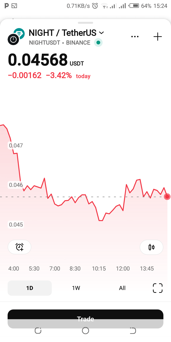 Right now, NIGHT (Midnight Network) is trading around $0.045–$0.046 on Binance, down roughly 7% in the last 24 hours and hovering near recent lows after pulling back from highs near $0.05–$0.055. This comes amid broader market pressure, but key support levels are holding firm, sparking rebound speculation among traders.Current Support & Technical Setup