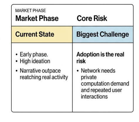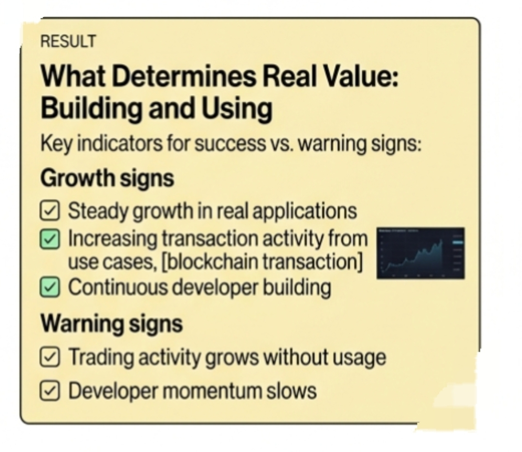 Si cette boucle échoue, la technologie reste impressionnante mais sous-utilisée. Si elle fonctionne, cependant, chaque nouvelle application renforce le réseau et rend le modèle plus pratique au fil du temps. Ce qui changerait mon point de vue est assez clair. Je chercherais une croissance régulière dans des applications réelles qui reposent sur une vérification privée, une augmentation de l'activité des transactions liée à ces cas d'utilisation, et des signes que les développeurs continuent de construire au-delà de l'expérimentation initiale. D'un autre côté, si l'activité de trading augmente sans aucune croissance significative de l'utilisation, ou si l'élan des développeurs ralentit, cela suggérerait que le système ne traduit pas son design en demande réelle. Donc, si vous regardez Midnight, il est plus logique de se concentrer sur l'activité plutôt que sur le prix. Dans des marchés comme celui-ci, la différence entre un concept solide et un système fonctionnel est simple. Cela dépend de savoir si les gens continuent de construire et d'utiliser lorsque l'excitation initiale s'estompe.