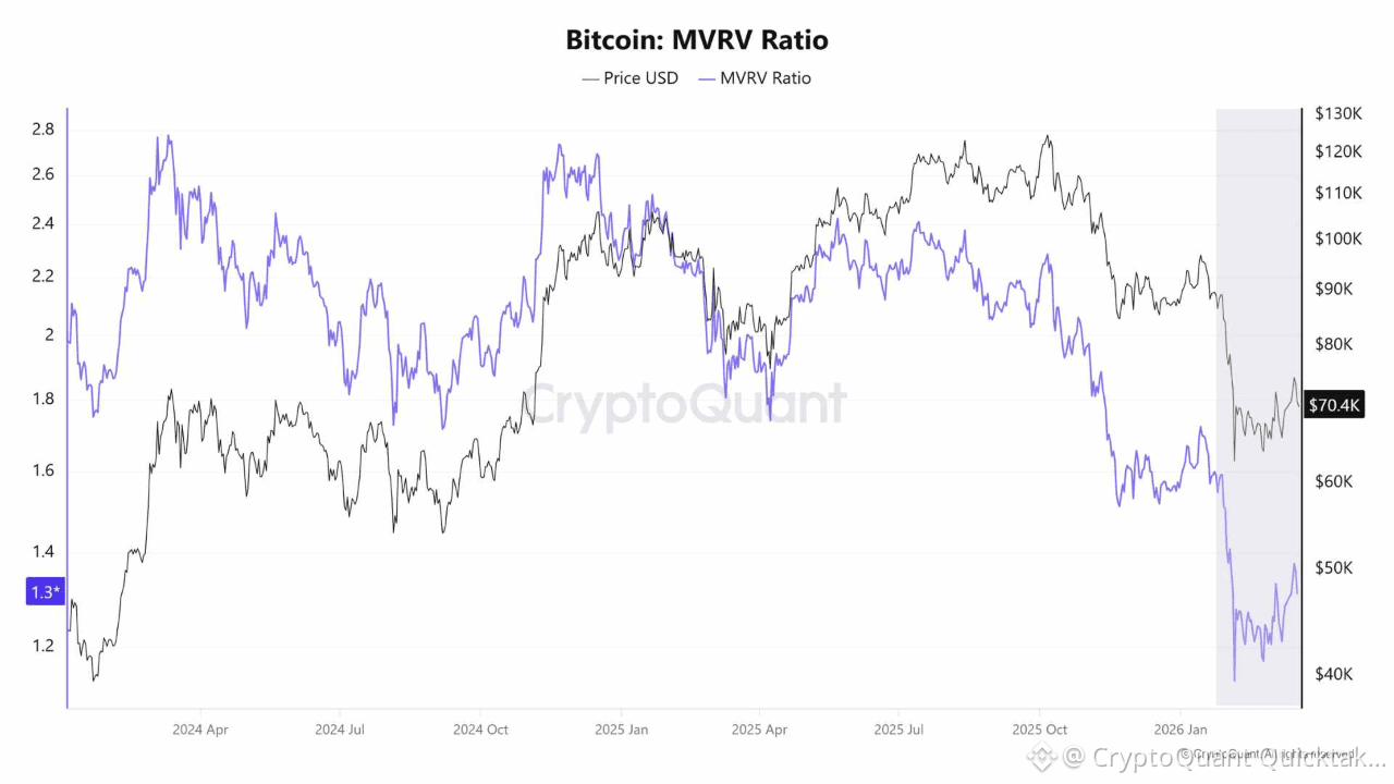 On-chain data provides context. MVRV around 1.3 suggests a neutral to slightly undervalued state, indicating no excessive overheating. Combined with stable long-term holder behavior, current selling pressure likely comes from short-term participants.