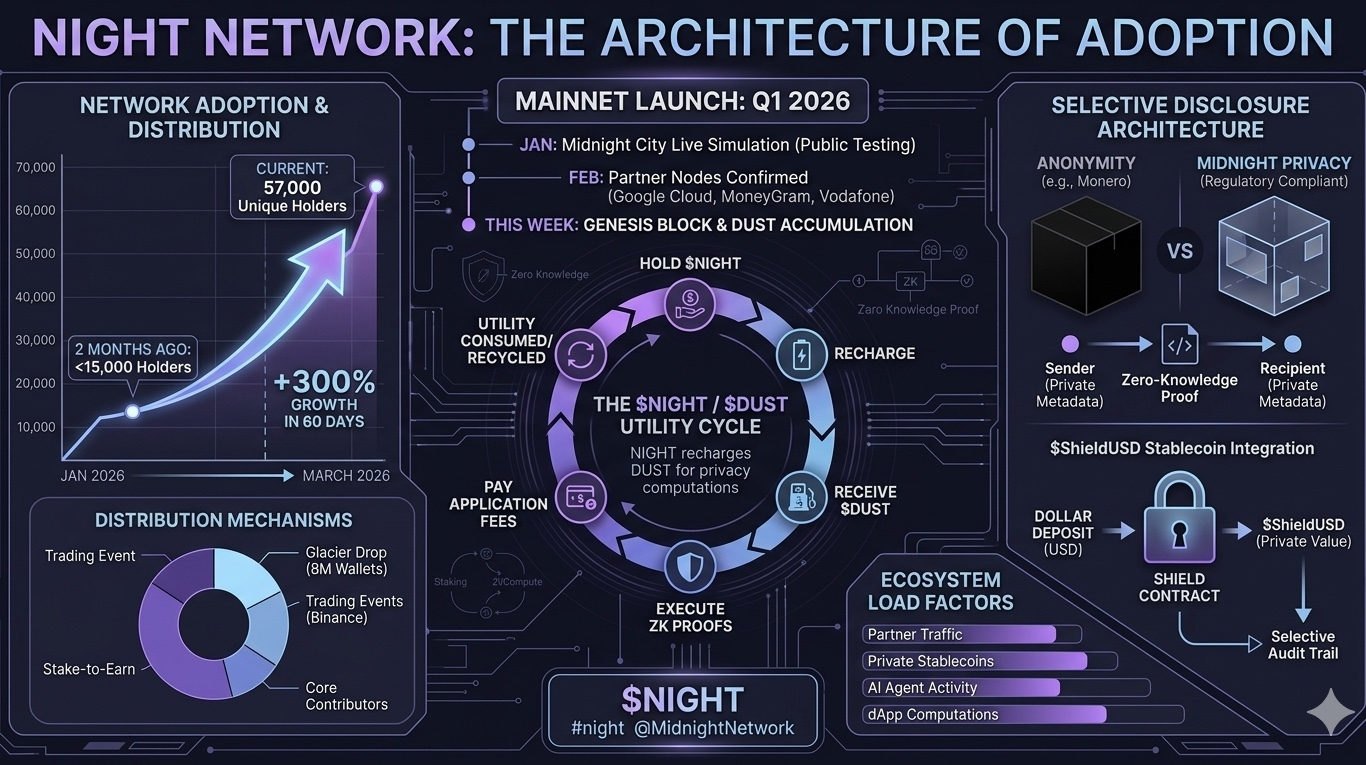 What @MidnightNetwork has quietly built over the last three months is one of the broadest holder bases of any privacy project in this market cycle. The Glacier Drop reached over 8 million wallets across eight different chains. Binance ran a 90 million NIGHT trading event just last week. The network sits at rank 65 on CoinMarketCap with a $750 million market cap despite $NIGHT still being pre-mainnet in terms of real utility.