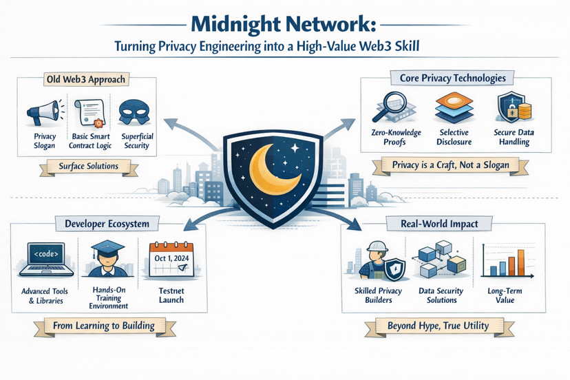 What stood out to me most is the way Midnight Network is pulling privacy engineering out of the realm of slogans and turning it into a high value Web3 skill. I think that is the core of the project. A narrative only gains real weight when it forces people to learn something difficult and useful. In this case, developers can no longer get away with writing smart contract logic the old way. They have to understand data flow, understand what should remain public and what should remain shielded, and understand how to prove compliance or correctness without wrecking the user experience. Privacy is no longer a slogan, it is a craft.