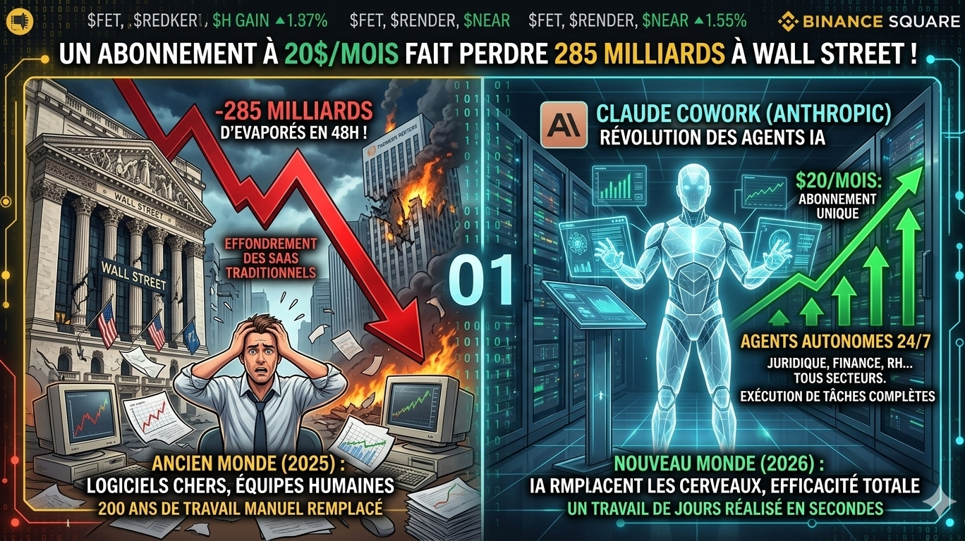 #AI #ArtificialIntelligence #WallStreet #ClaudeCowork #Write2Earn #CryptoEconomy2026 $FET $RENDER $NEAR