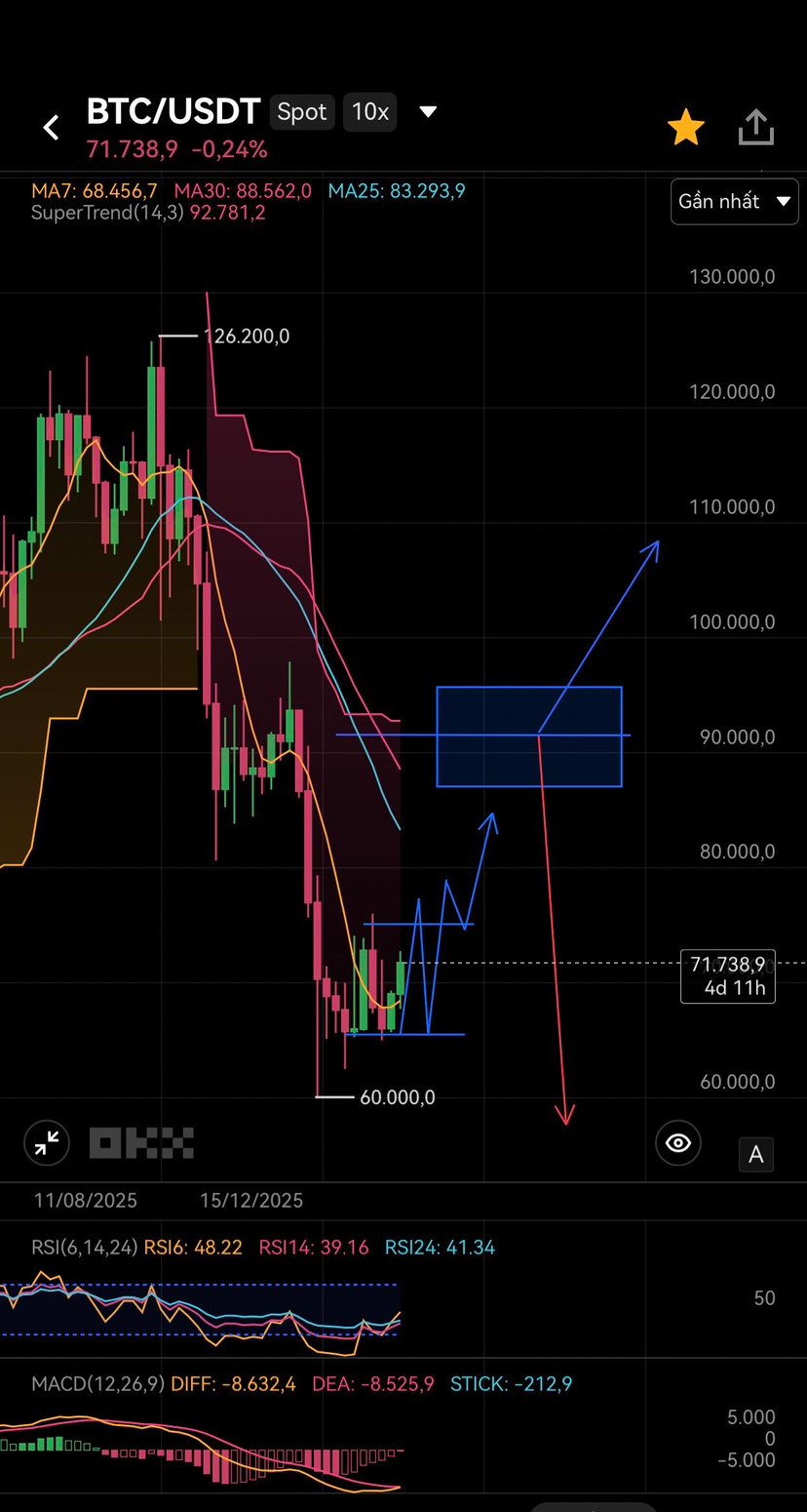 BTC va se consolider latéralement dans une fourchette large : 65k-75k pendant un certain temps. Quand les conditions sont favorables, selon le sentiment du marché et le comportement des petits capitaux, BTC pourrait connaître une hausse vers la zone 80k-90k.