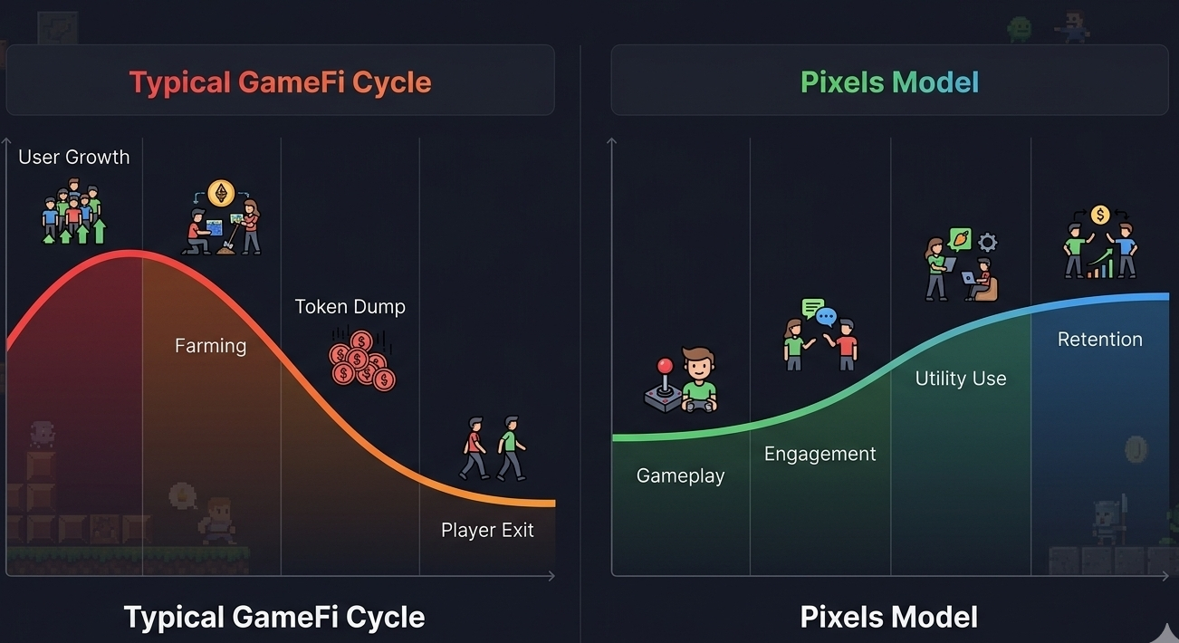 Most Web3 games follow a predictable cycle — users join for rewards, farm aggressively, and leave when incentives drop. What’s interesting about Pixels is that it’s quietly breaking that loop by focusing on gameplay-first design rather than token-first attraction.