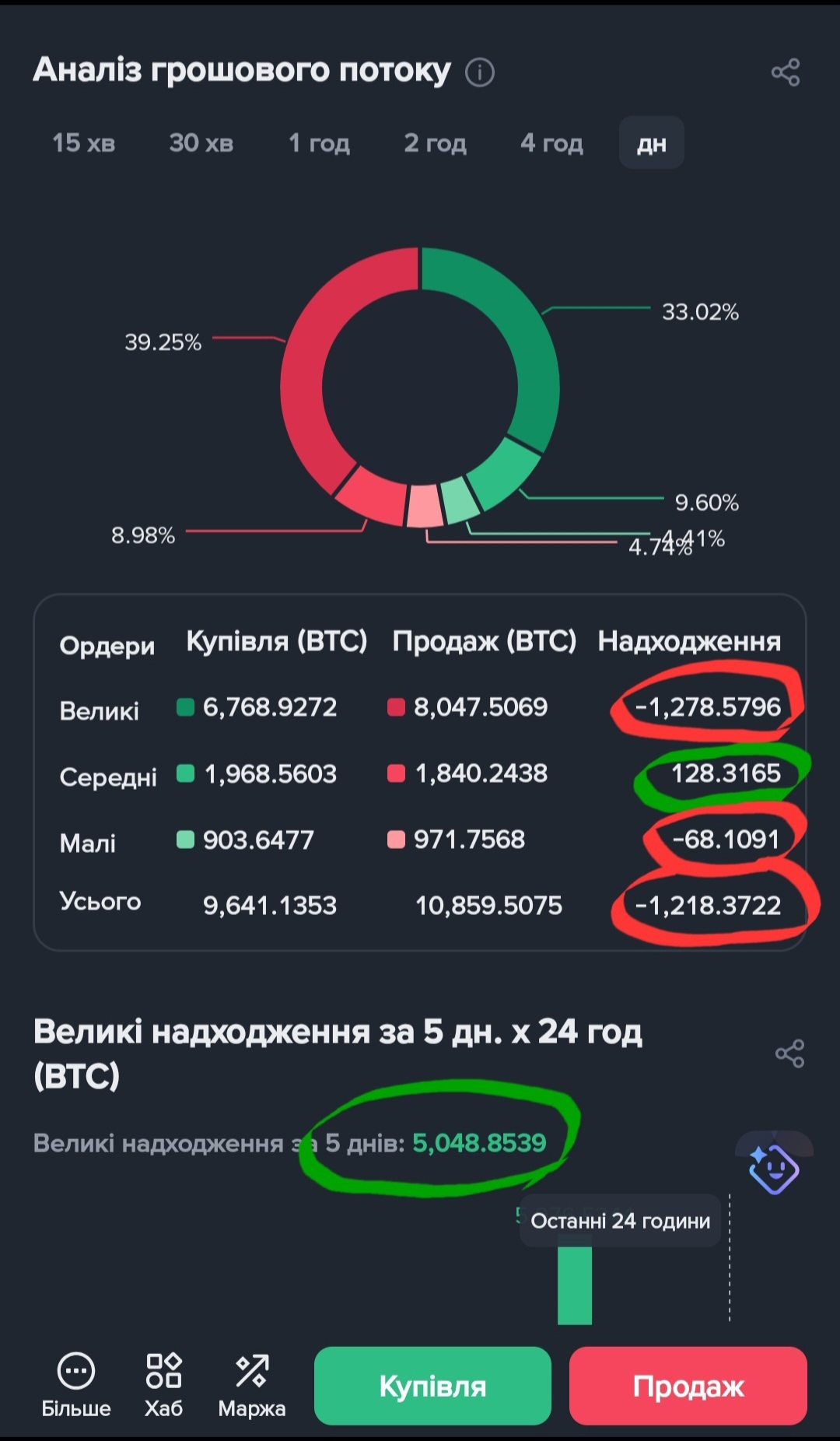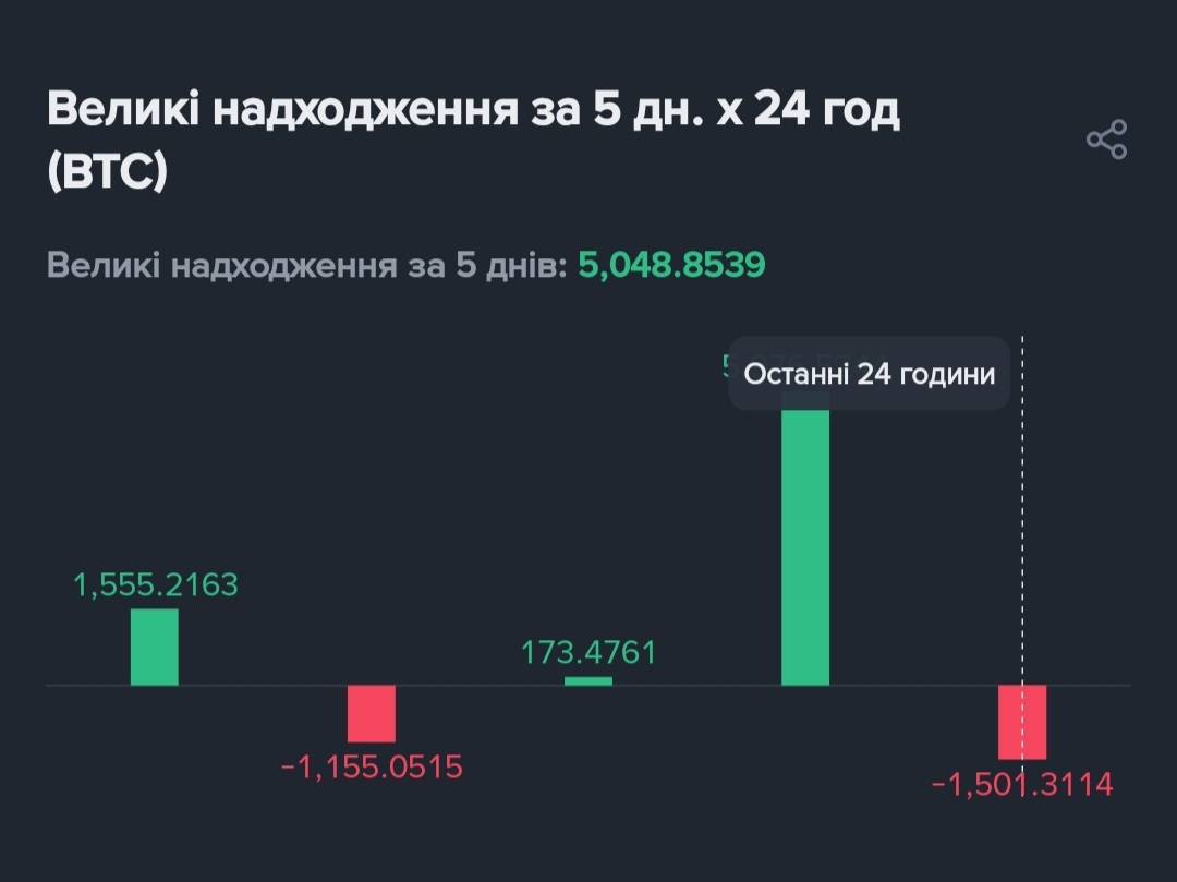 3️⃣Кити: За добу локальний мінус (-1,278 BTC), але це лише частина гри