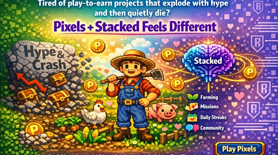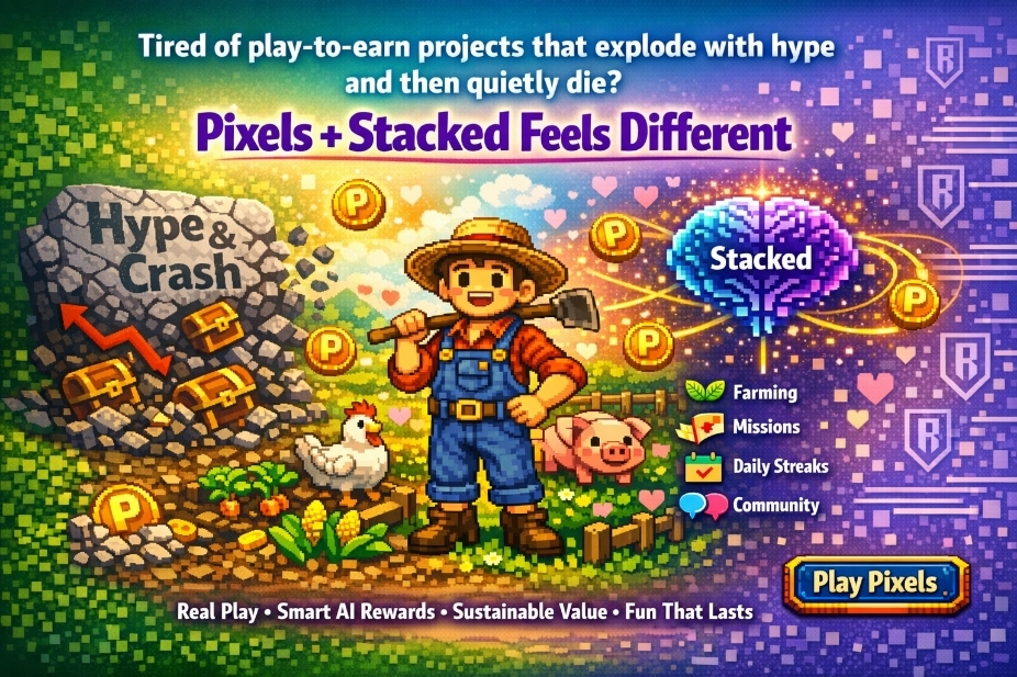 Stacked is the clever AI brain behind the rewards. It doesn’t shower you with tokens for mindless grinding. Instead, it smartly rewards real play: farming your land, completing fun missions, keeping daily streaks, and actually contributing to the community. The result? Meaningful $PIXEL earnings that don’t vanish after a week.