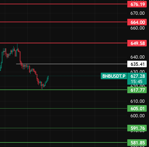 BNB nuit, faites attention à ce niveau 635, seulement si ce niveau est maintenu, cette vague de correction sera considérée comme terminée. Continuez à aller vers les niveaux 649-664-676 pour attendre des positions courtes !