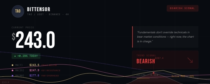Les fondamentaux de TAO autour de l'infrastructure AI décentralisée restent vraiment intéressants. Mais les fondamentaux ne remplacent pas les techniques dans des conditions de marché baissier — et en ce moment, le graphique est en charge.