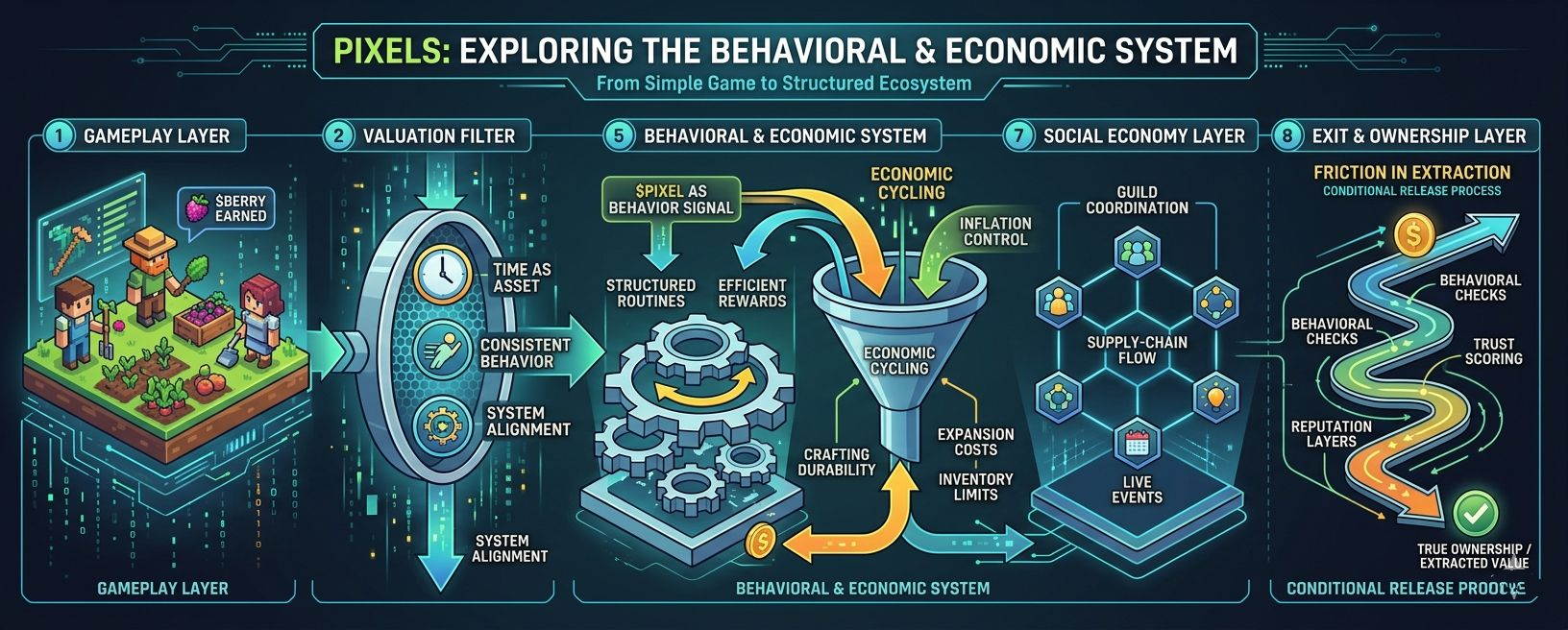 To maintain long-term stability, Pixels introduces continuous engagement mechanisms: