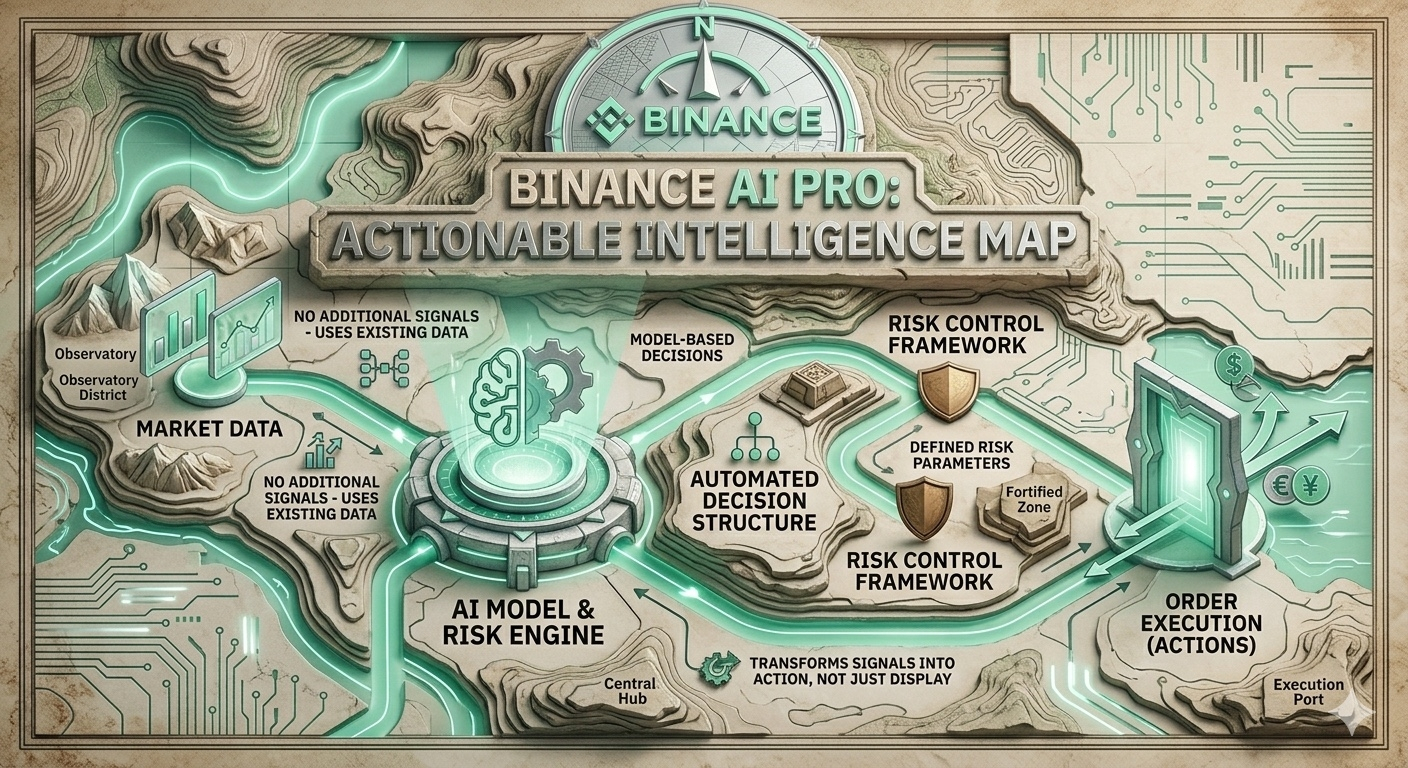 Binance AI Pro, ít nhất từ cách tôi quan sát, không đi theo hướng chỉ “cho bạn thấy thị trường đang làm gì”. Nó đi vào một lớp khác: thực thi quyết định dựa trên mô hình. Nó không thêm nhiều tín hiệu hơn theo nghĩa truyền thống. Nó lấy dữ liệu thị trường và đưa vào một cấu trúc ra quyết định tự động, sau đó thực hiện giao dịch trong một khung kiểm soát rủi ro đã được định nghĩa.