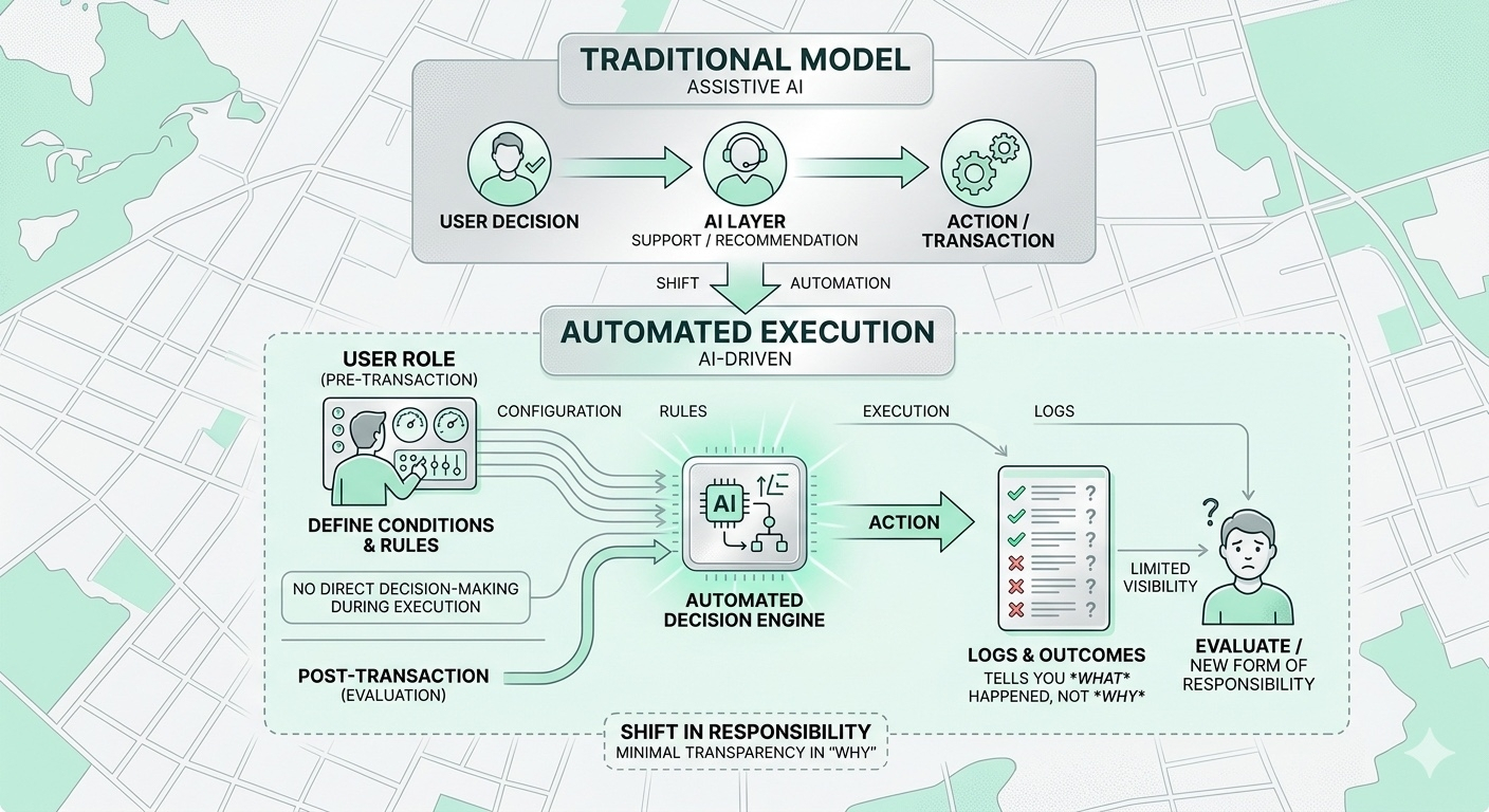 Nhưng khi phần execution đã được tự động hóa, vai trò của người dùng bắt đầu trượt dần. Bạn không còn thật sự can thiệp ở thời điểm giao dịch xảy ra nữa. Thay vào đó, bạn chỉ còn “set kèo từ trước” - kiểu cấu hình điều kiện để hệ thống tự ra quyết định hộ bạn.