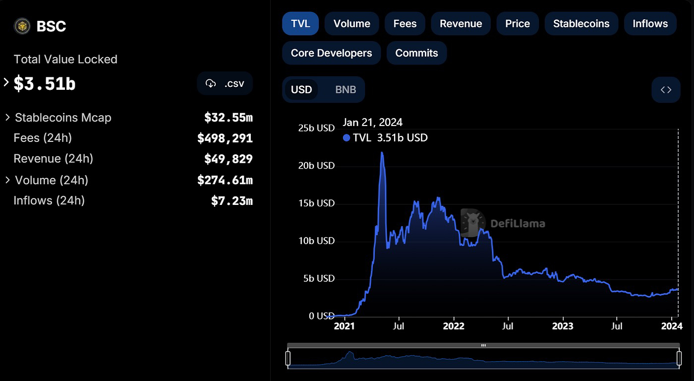 • La TVL de BNB Chain reste à environ 10,4 milliards de dollars, avec un volume de transactions quotidien stable à plus de 30 millions.