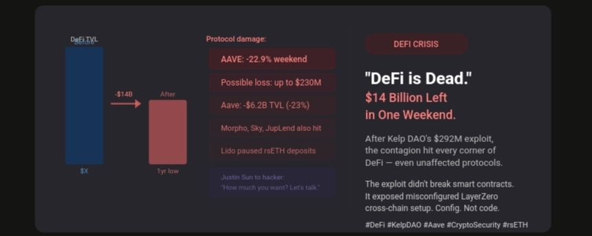 The "DeFi is dead" reaction is an overstatement — it happens after every major exploit. But the underlying concern is legitimate. When a misconfiguration in a LayerZero bridge can cascade $14 billion out of the ecosystem in 48 hours, it raises serious questions about whether DeFi's interconnectedness is a feature or a systemic fragility.