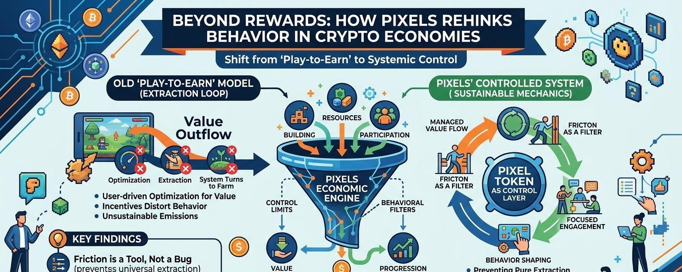 Pixels, at least from what I have observed, seems to understand that danger. It does not feel like a project that wants to spray value everywhere and hope it works out. There is a sense that participation needs to be shaped, filtered, and controlled. Value needs boundaries. Incentives need limits. That kind of thinking is usually missing in projects that rely too heavily on growth and momentum.