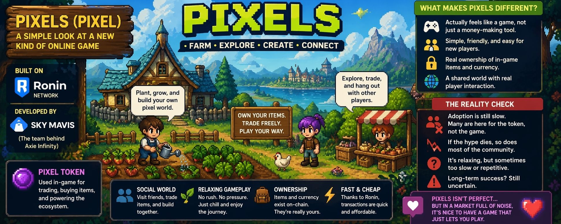 Look, I’ve seen too many of these crypto games already… same story every time, big promises, flashy tokens, and then boom—dead in 3 months. So when I opened Pixels I wasn’t expecting much. Honestly. Just another hype cycle thing, right?