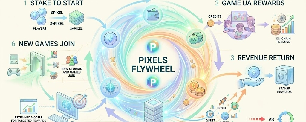 La partie intéressante est que le même PIXEL ne reste pas fixé dans un rôle. Il continue de transformer sa fonction à l'intérieur de l'écosystème. À un moment donné, il agit comme une puissance de staking, puis il devient un carburant de croissance, ensuite des récompenses pour les joueurs, plus tard un retour sur les revenus, et enfin des données comportementales qui façonnent le prochain cycle.