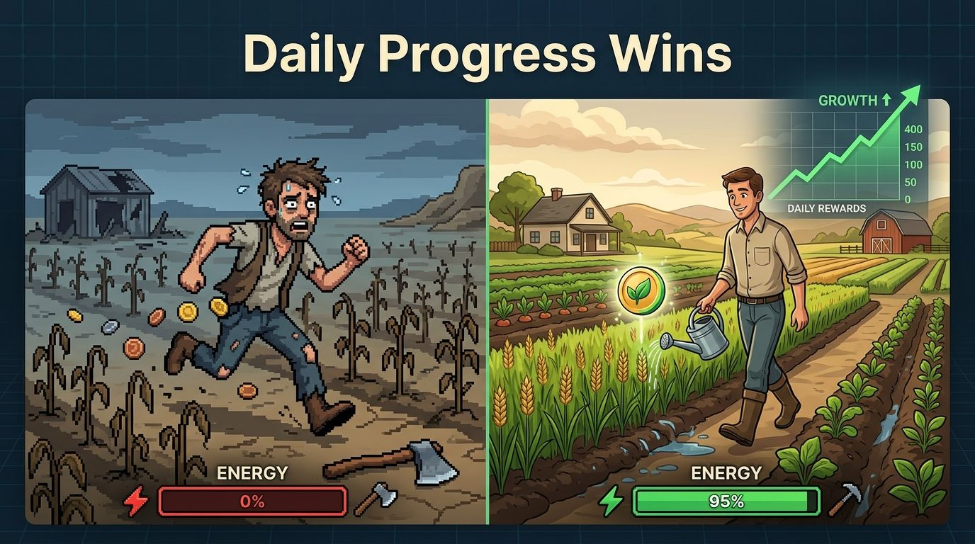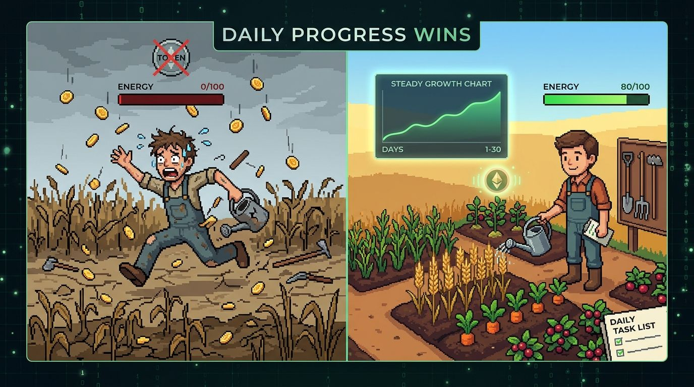 The game is built around rhythms. Farming has cycles. Land has limits. Energy runs out. The whole system is designed in a way that rewards people who understand those limits and work within them, not against them.