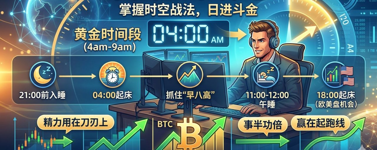 在加密货币市场的残酷多维竞争中,任何优势都是致胜的关键。除了技术分析和宏观视阈,你对自己体力和精神世界的掌控——即你的作息——也是不可或缺的利器。这就是“时空战法”的核心:优化时间利用和身体状态,赢得市场竞争。【老金认证】