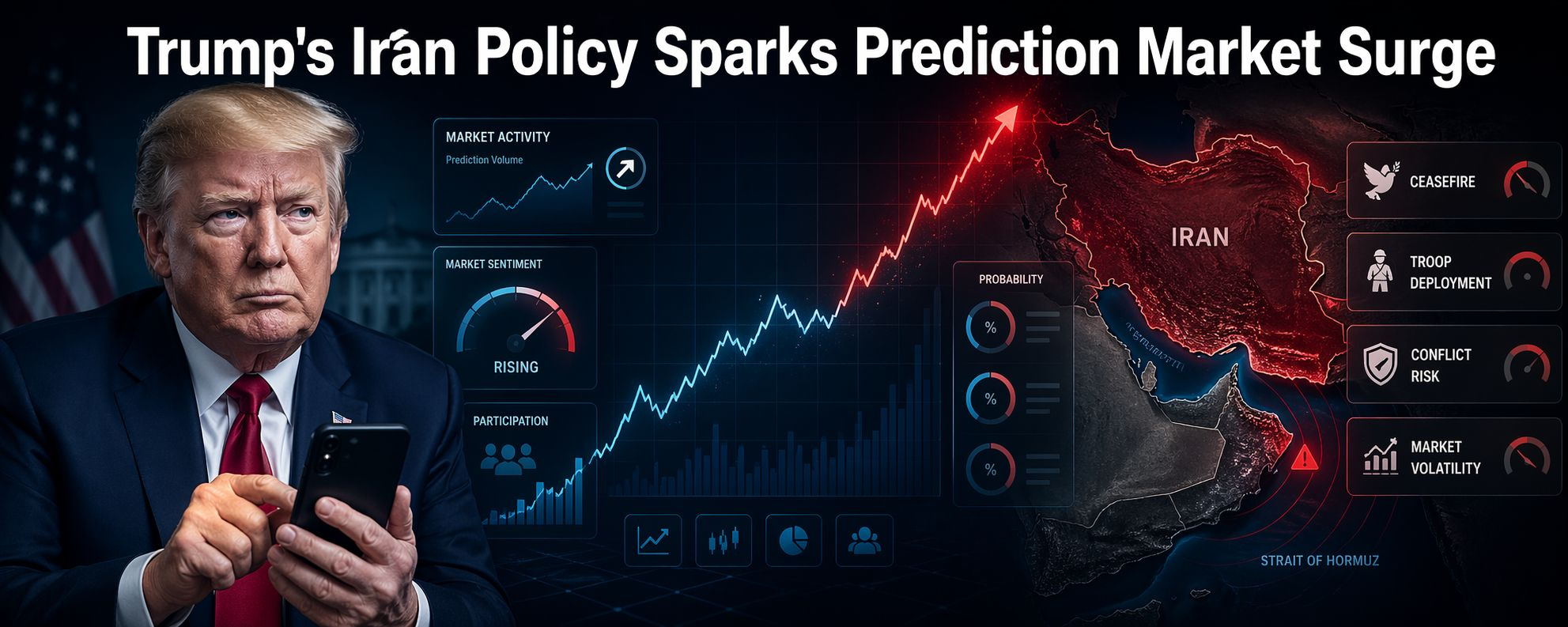 Trump ne ceasefire ka announcement kiya tha, Polymarket par Iran war se related 413 million trades record hue, aur total transaction value $100 million se upar chali gayi.