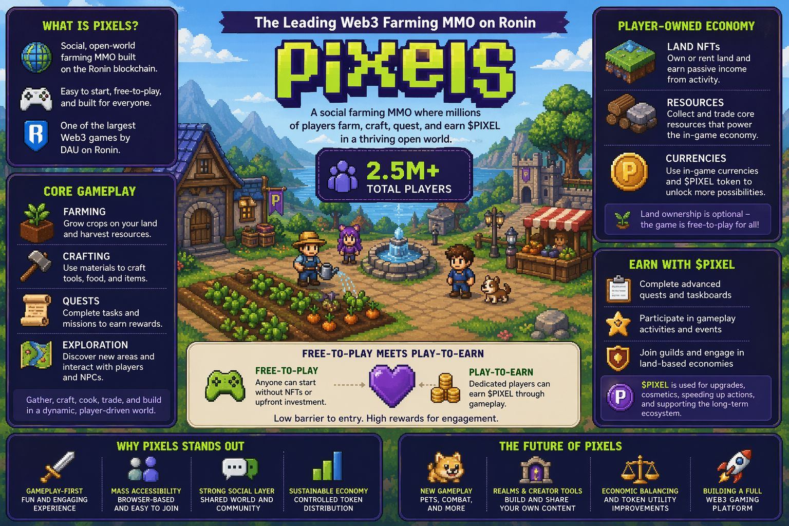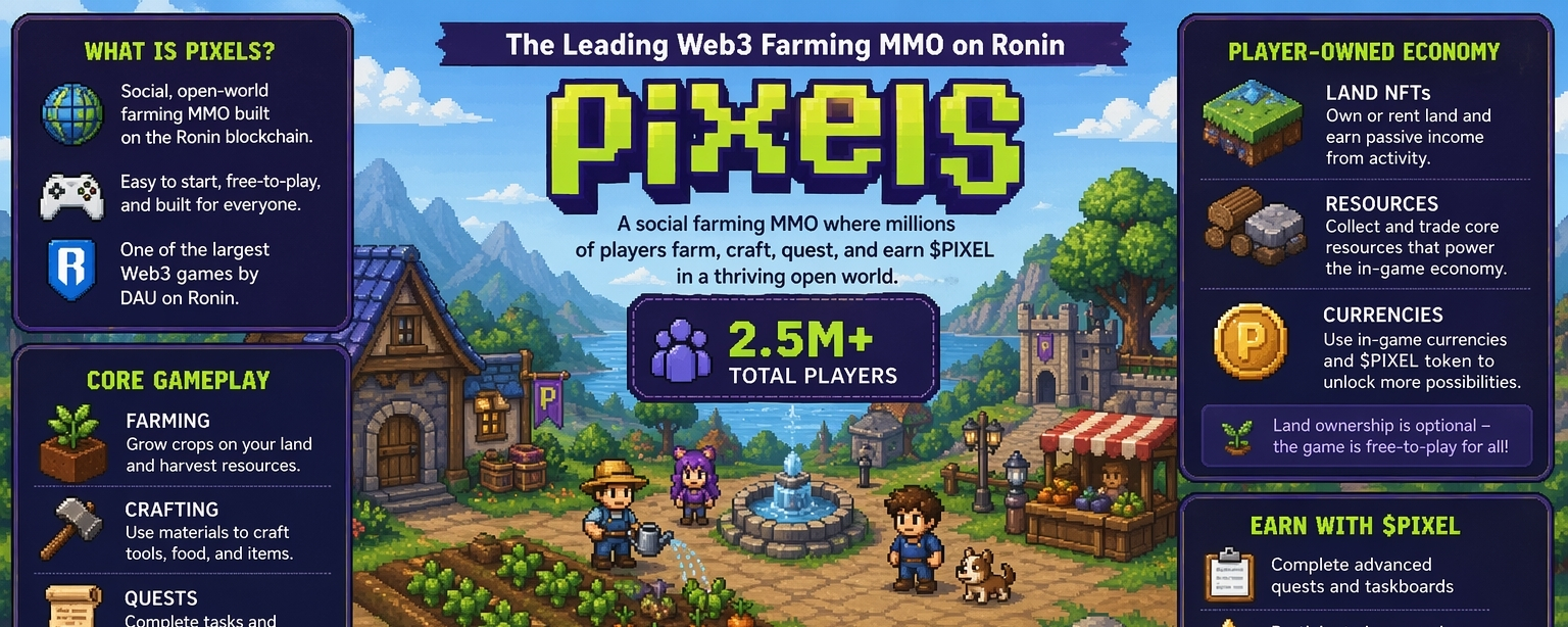 Pixels is more than just a farming game—it’s a blueprint for scalable, user-friendly Web3 gaming. With millions of players, a thriving economy, and a strong foundation on Ronin, it demonstrates how blockchain games can evolve beyond hype into sustainable, engaging digital worlds.