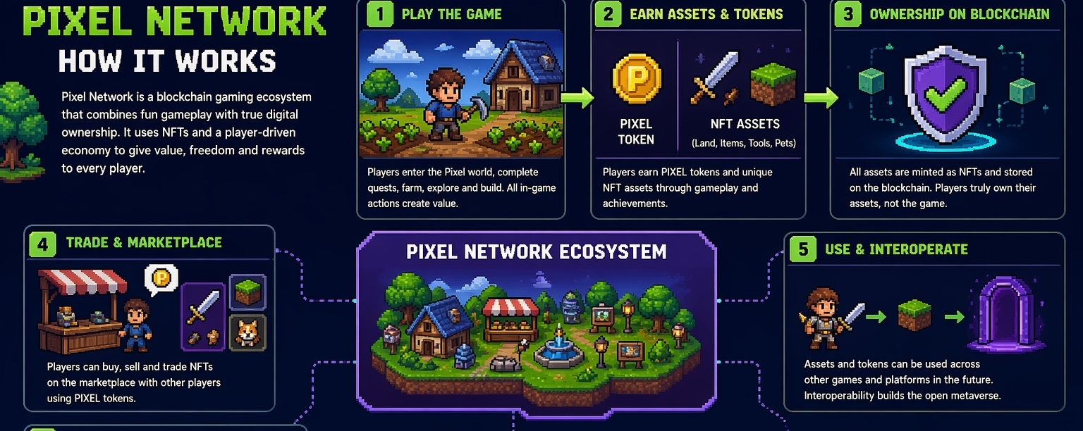 Think of @Pixels Network as a new kind of gaming ecosystem where everything you earn or build can truly belong to you. Games like Pixels are great examples. Instead of your items being locked inside a company’s servers, they exist as NFTs on the blockchain.