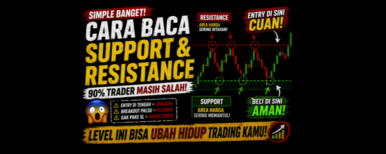 Kalau kamu sering ngalamin "beli di pucuk, jual di dasar," kemungkinan besar kamu belum paham pondasi paling dasar dalam trading: Support & Resistance. Tanpa ini, kamu cuma jadi santapan empuk buat Smart Money.