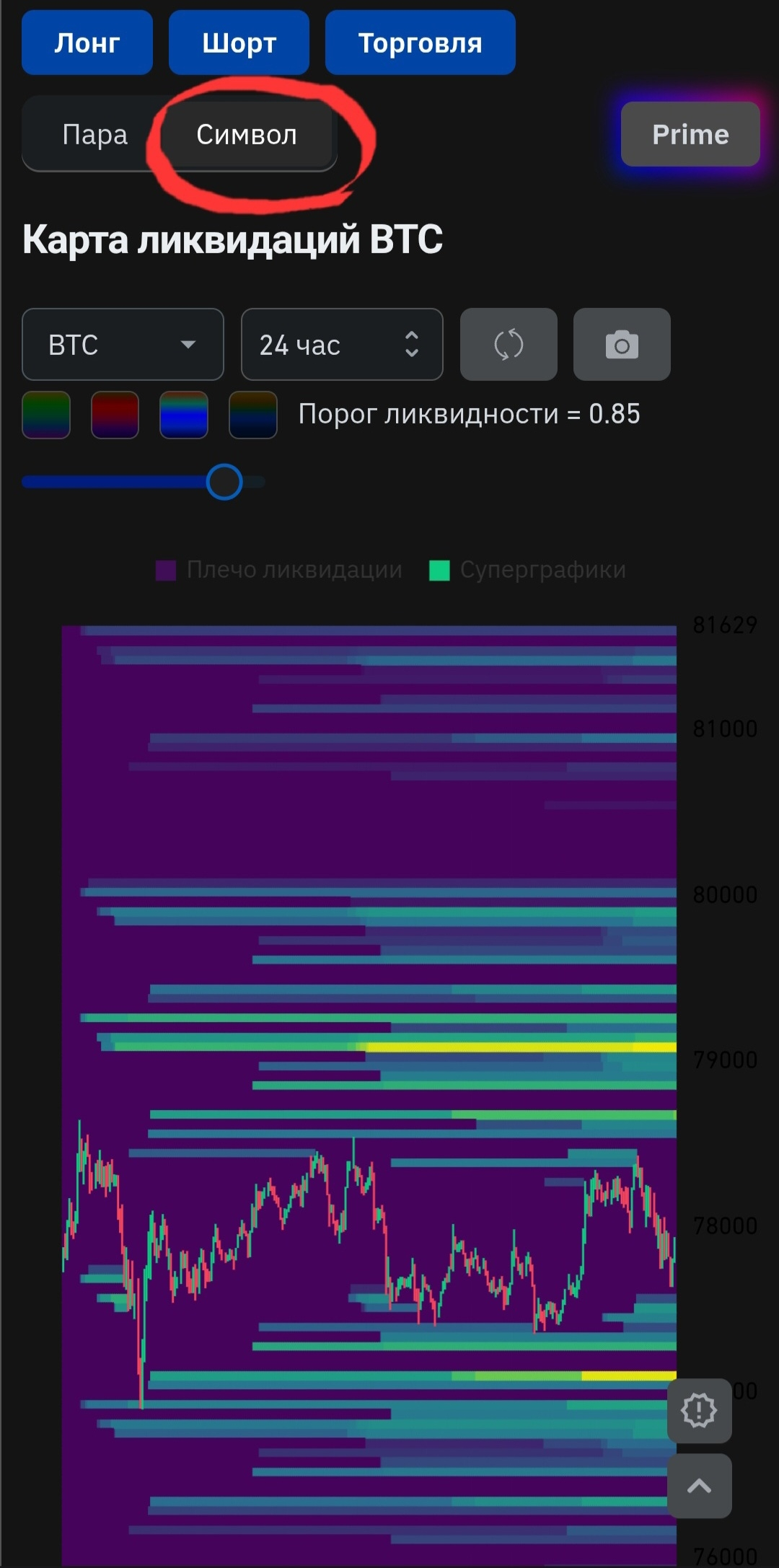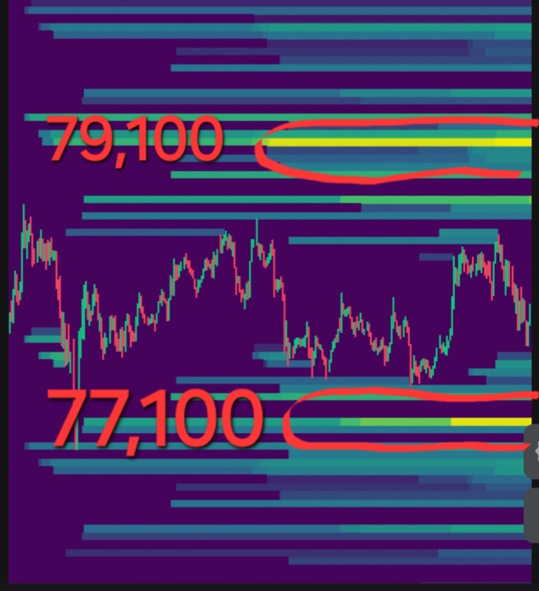 ⬆️ ВЕРХНІЙ МАГНІТ (79 100): А тут справжній куш — $171 мільйон крові шортистів! 📈💰 Цей магніт набагато сильніший.